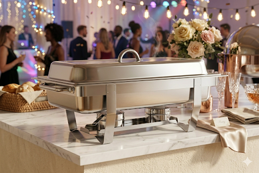 Upscale your party and keep your food warm with these stainless steel Full size or Half Size (1/2 tray) Chafing Dishes.